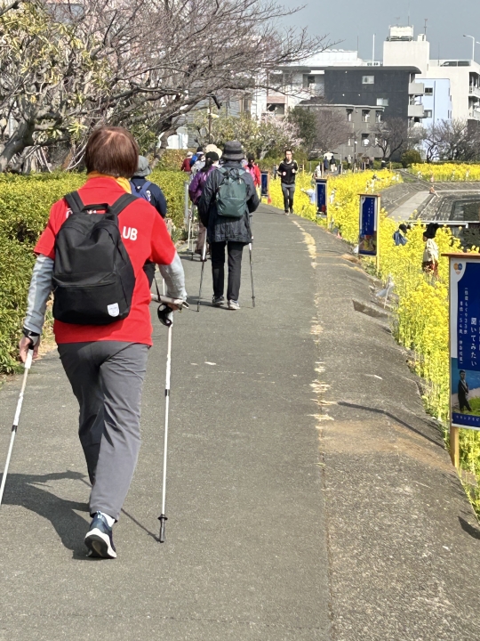 気をつけて、楽しくノルディックウォーキングしましょう。
